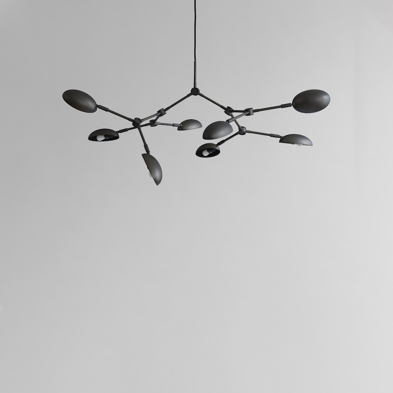 Finisaj : aluminiu placat in culoare Bronze periat, 14 brate flexibile si reglabile si 8 abajururi curbate