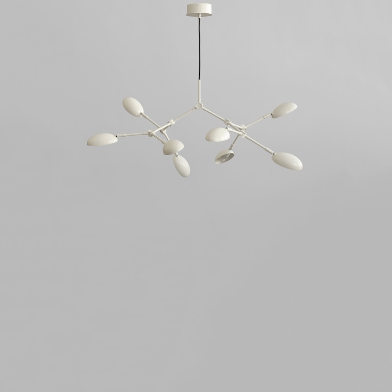 Finisaj : aluminiu placat in culoare White, 14 brate flexibile si reglabile si 8 abajururi curbate