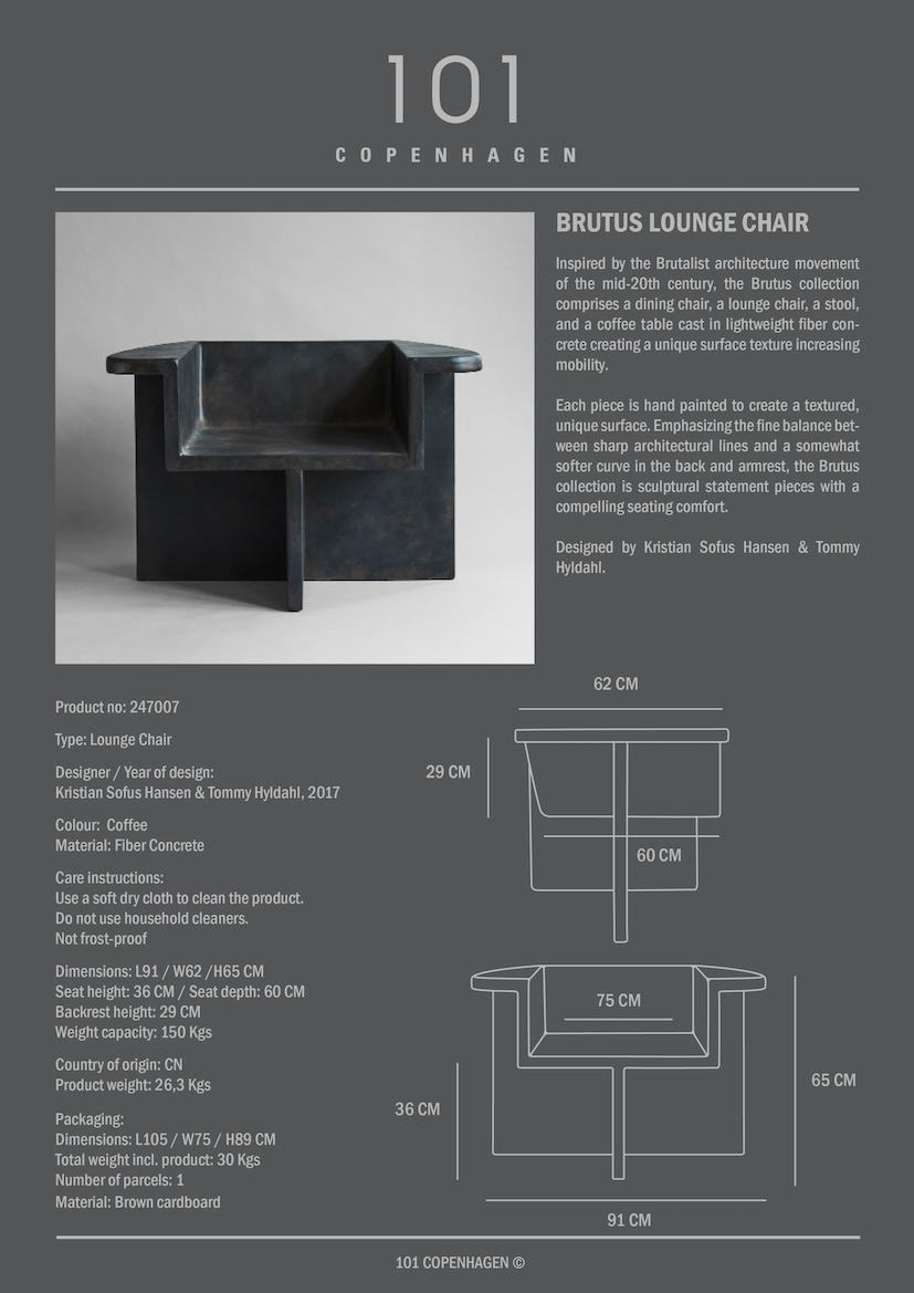 Fotoliul Brutus Lounge turnat din fibra de beton usor, pictat manual pentru a crea o suprafata texturata si unica, cu eventuale variatii subtile de culoare.