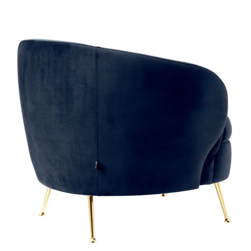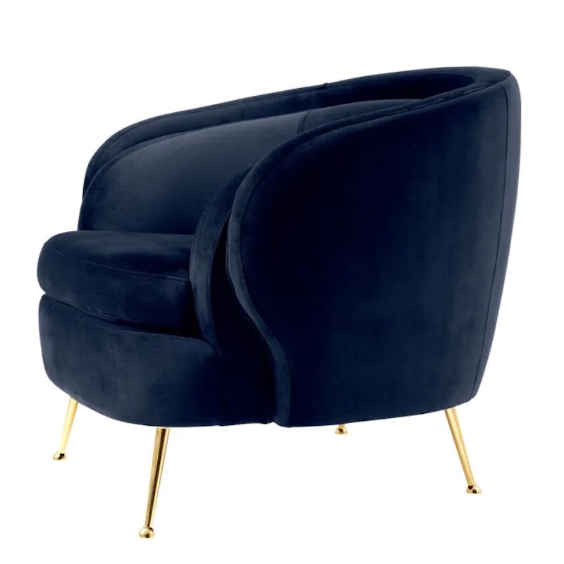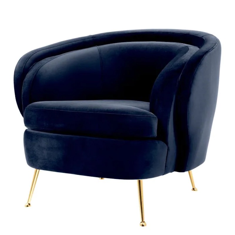 Finisaj : material textil catifea savona midnight blue, spuma polyester, picioare otel finisaj alama