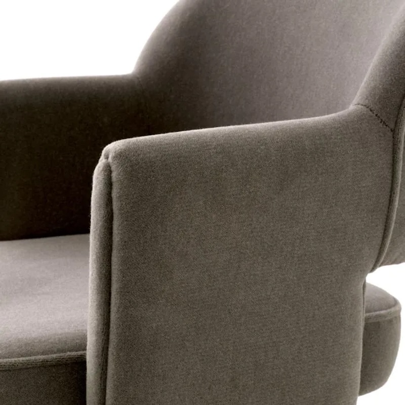 Finisaj : textil johnston brown mohair, 46% lana 34% polyester 20% mohair , picioare lemn negru